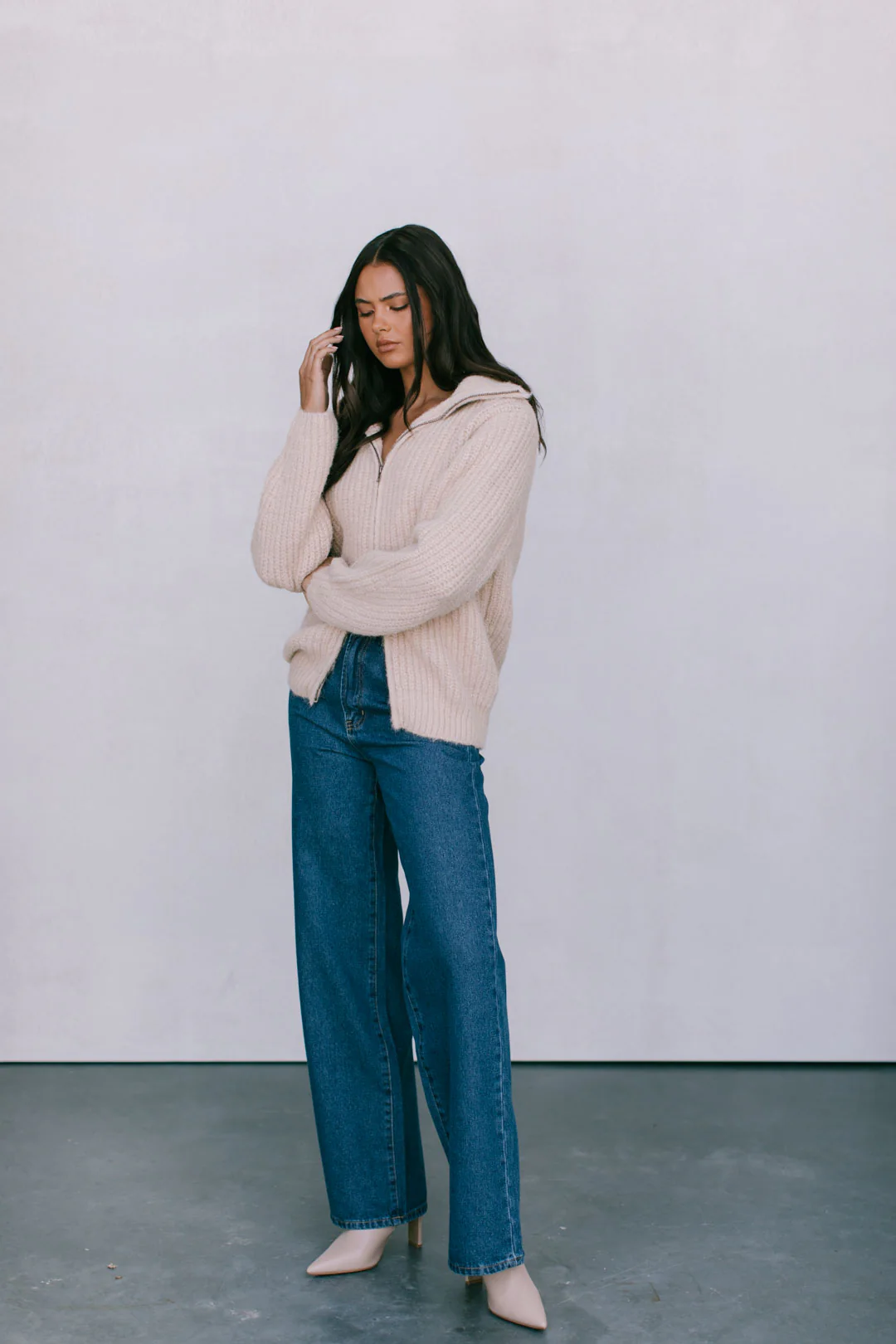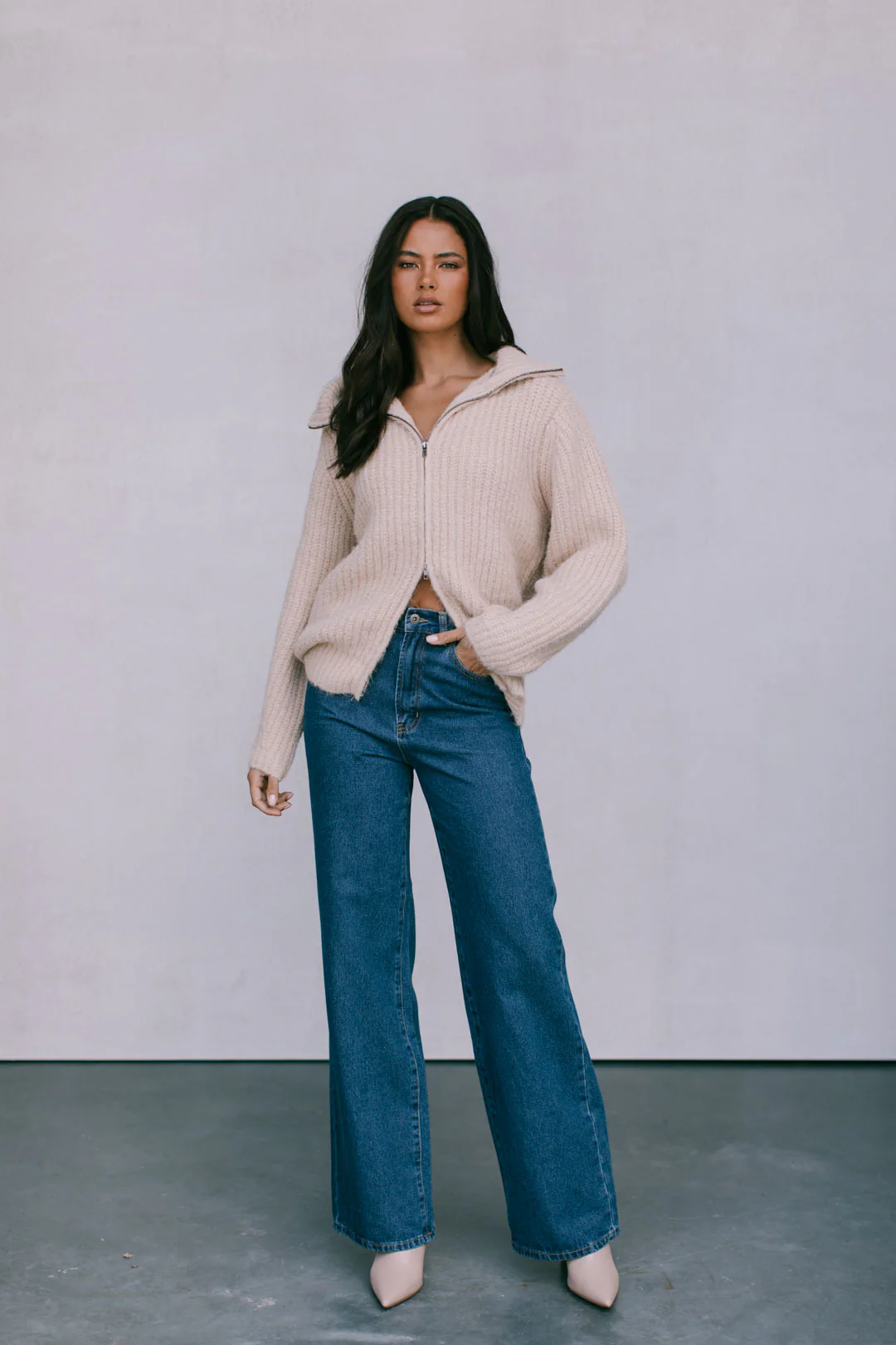 Wrap yourself in warmth in Dahlia. The ultimate cozy essential, this thick knit features an oversize silhouette + relaxed collar for effortless layering. A two-way zipper, accented with charcoal hardware, adds versatility to this go-to piece.
