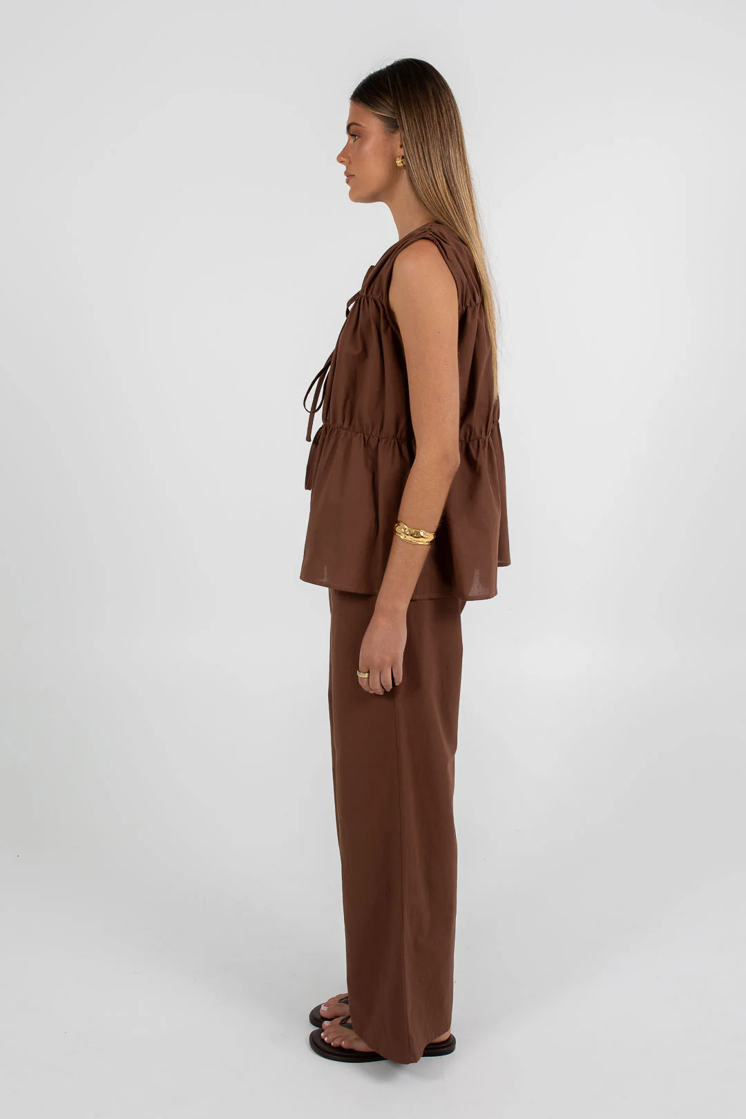 Elevate your everyday with this chocolate brown set, featuring a sleek sleeveless top and relaxed pants. Effortlessly refined and easy to style, it’s the perfect blend of comfort, minimalism, and modern sophistication.