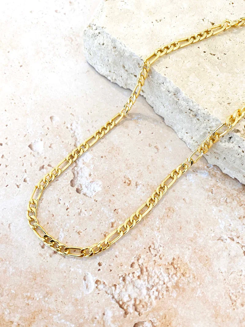 Our Figaro Necklace offers a classic style chain perfect for everyday wear or layering up for a chic look. This gold plated piece will be your new favourite.