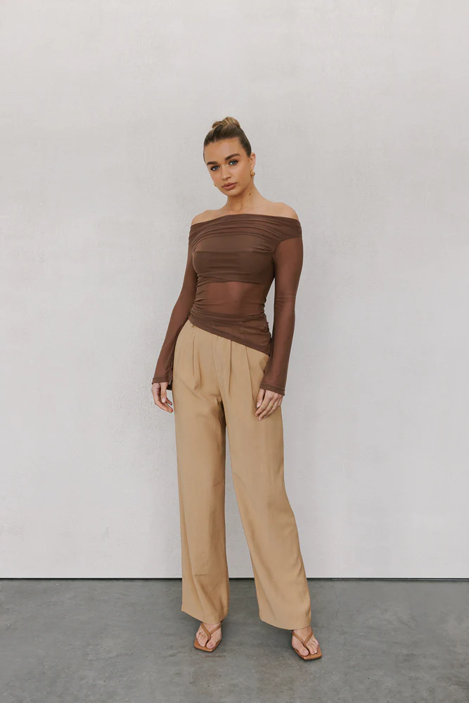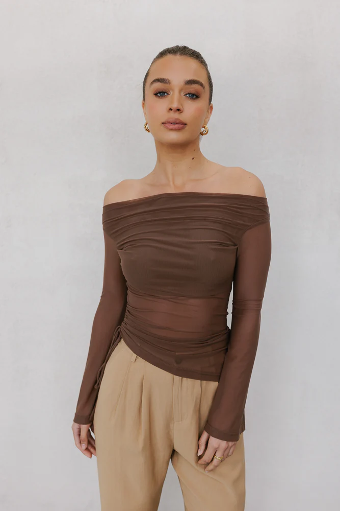 Elevate your wardrobe with our captivating Foxx Top. Exude a sense of understated glamour with her sheer mesh + off-shoulder, folded neckline. She boasts a stunning blend of sophistication + allure, designed to make a statement with every wear.