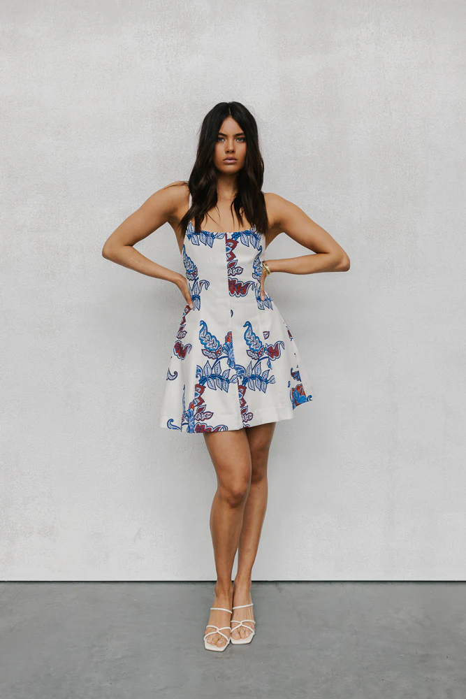 Our Haree Mini Dress by BAIA is a modern woman's must-have, exclusive to MMB. Crafted in a sweet blue + chocolate brown printed linen blend, this flattering a-line mini is effortless + chic. The perfect mini to style from day drinks to dinner.