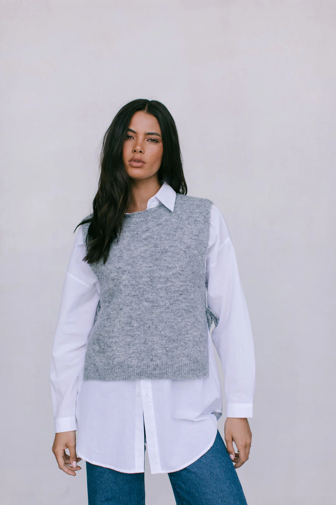 Hattie Knit Vest - Grey Marle