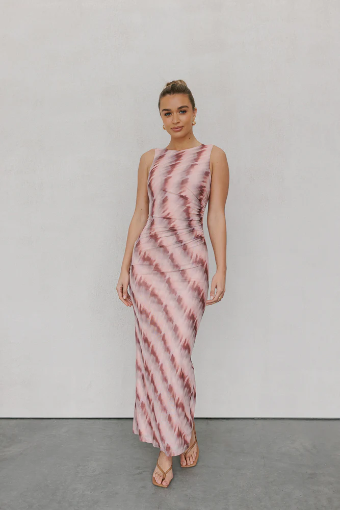Kayla Maxi Dress - Berry Watercolour Mesh