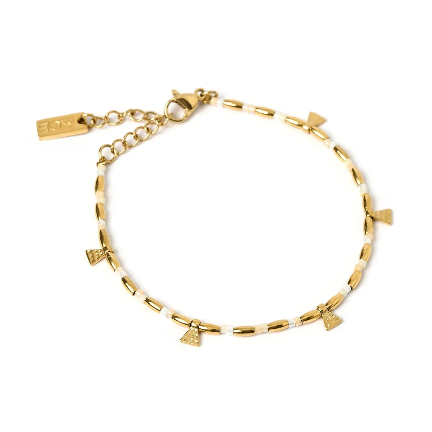 A beaded beauty, our Natalia Bracelet is here to spark a sense of fun + playfulness within your wardrobe. These unique + textured triangle beads provide a cool finishing touch to your daily fit.