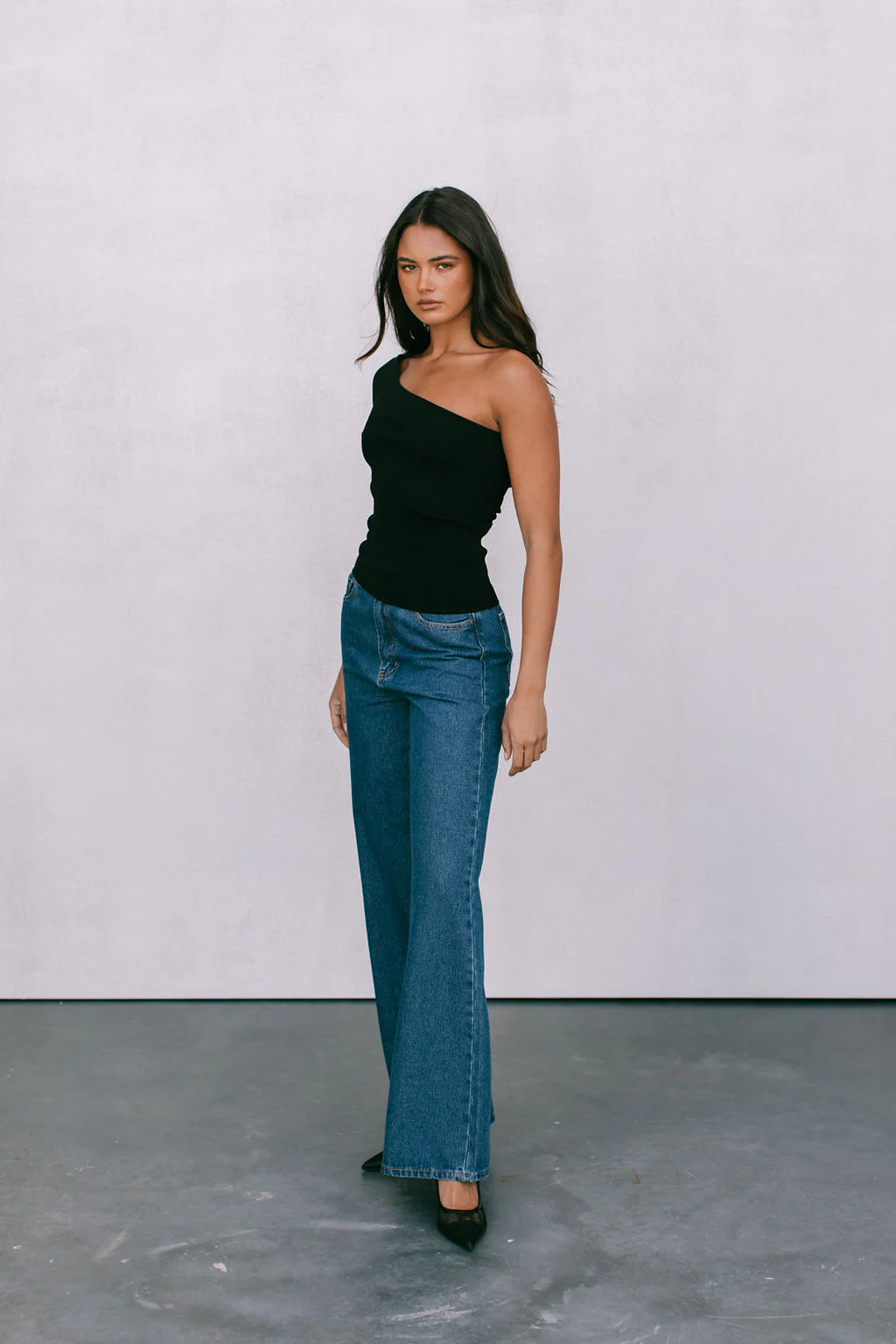 Meet our Nilla Knit Top, a modern black knit with modern edge. With an asymmetrical one-shoulder design, subtle ruching + flattering silhouette, she's a versatile staple perfect for effortless style. Soft, stretchy + chic, she's a must-have.