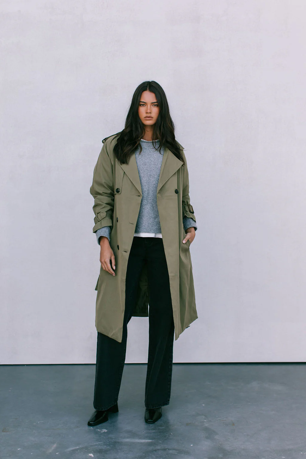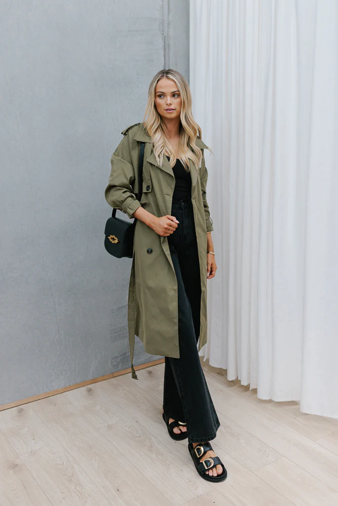 Destined to be one your best wardrobe investment, streamline your everyday outfit with our cool khaki green, utility style Oaklie Trench Coat. Ready for dashing between meetings, weekends away, day-to-day errands or elevated with heels on a night out.