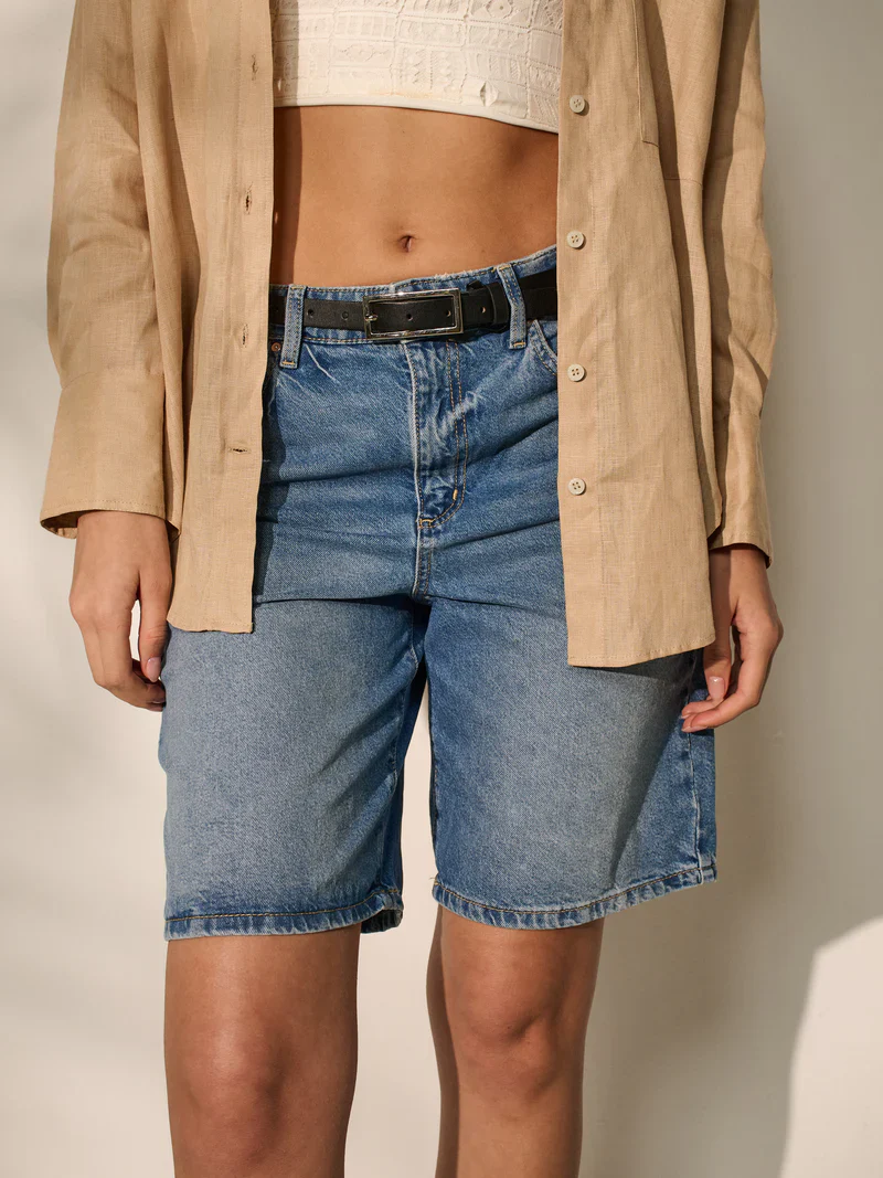 Our Pete Skinny Belt is a trending slim-line black belt. Offering timeless + classic style, her rectangle buckle in a silver finish will elevate your outfit with ease.