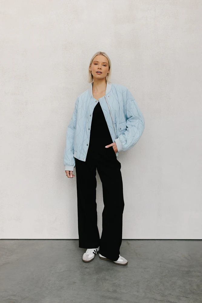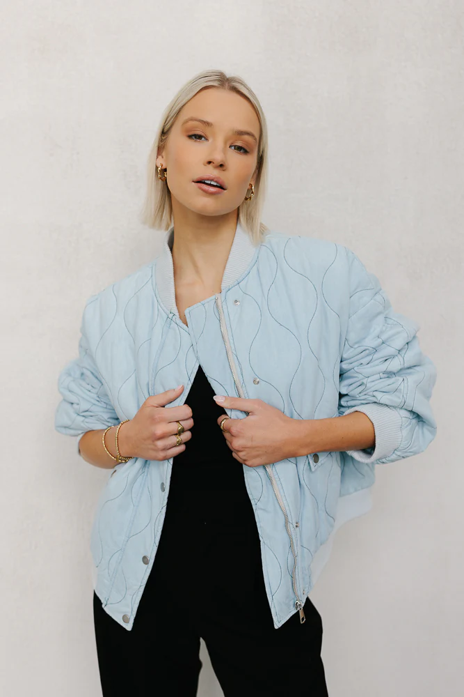 Qassie Quilted Bomber Jacket - Washed Light Denim