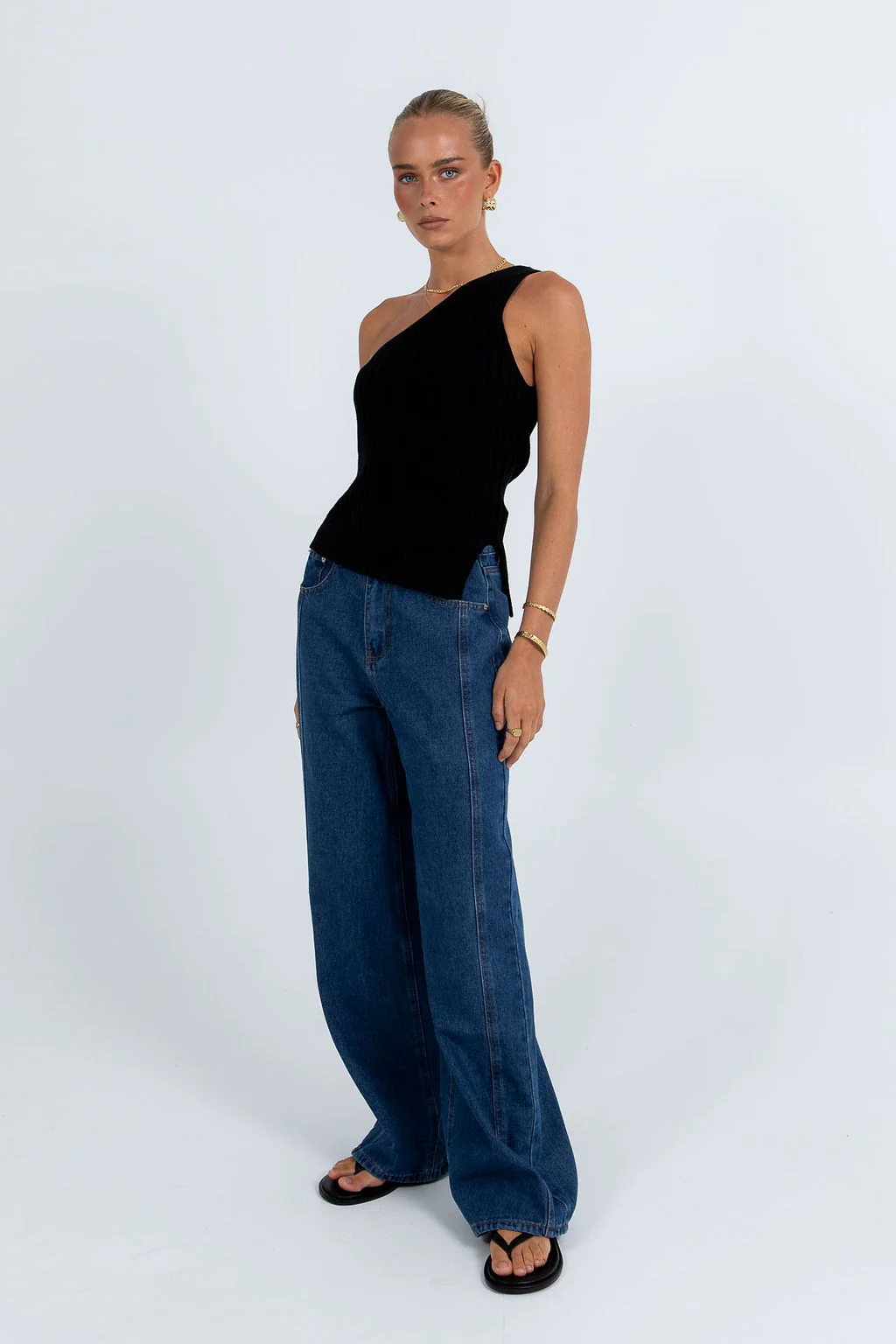 Our Uma Knit Top offers a modern take on classic knitwear. Designed in a timeless black knit, her asymmetrical shape offers a flattering fit, making it a versatile choice. Style with your fave denim for the ultimate trans-seasonal outfit.