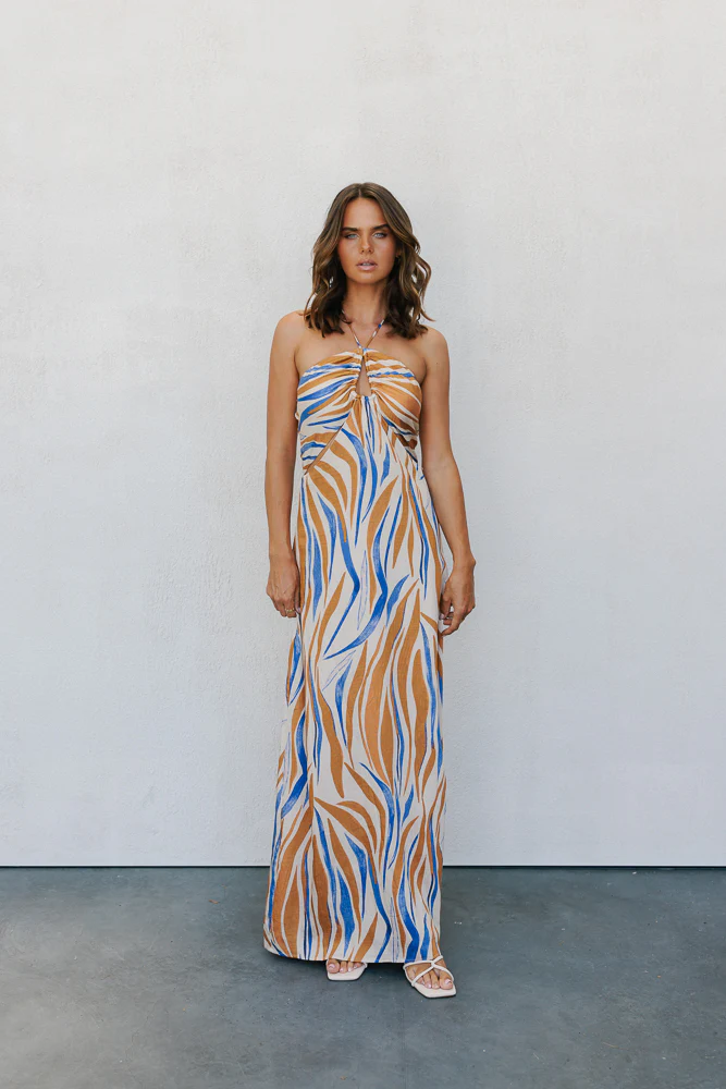 -70%Variah Maxi Dress - Sand/Blue Print—