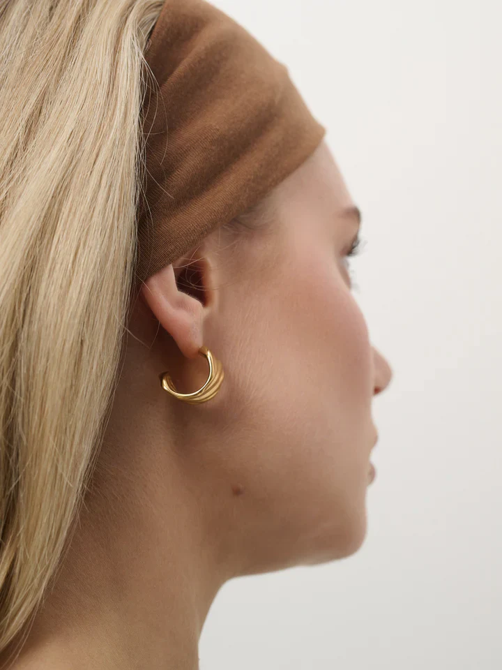 Our Vera Hoops are a sweet texture gold hoops are an everyday must-have.