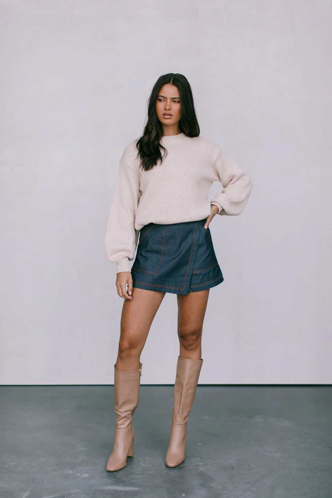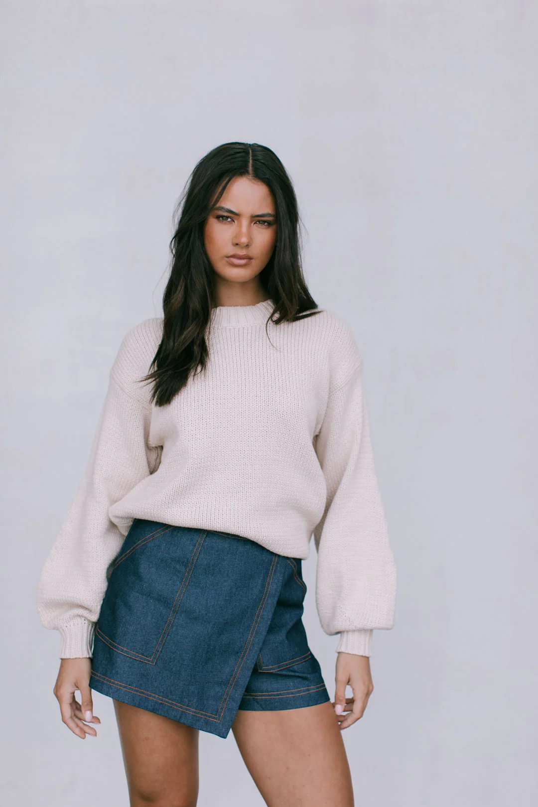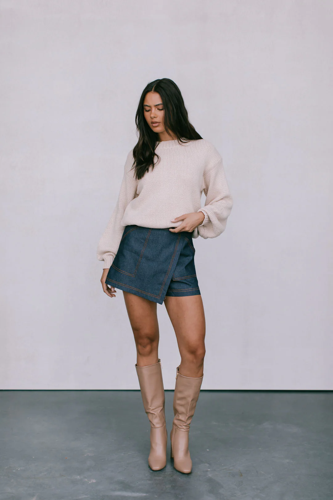 Our Wallin Skirt offers a contemporary twist on classic denim that will elevate your casual chic style effortlessly. Crafted in a dark navy denim with feature golden stitching, this asymmetrical skort boasts for a versatile + edgy look.