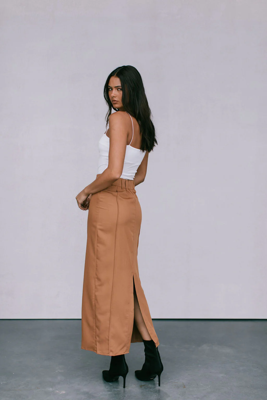 Gorgeous caramel tan midi length skirt