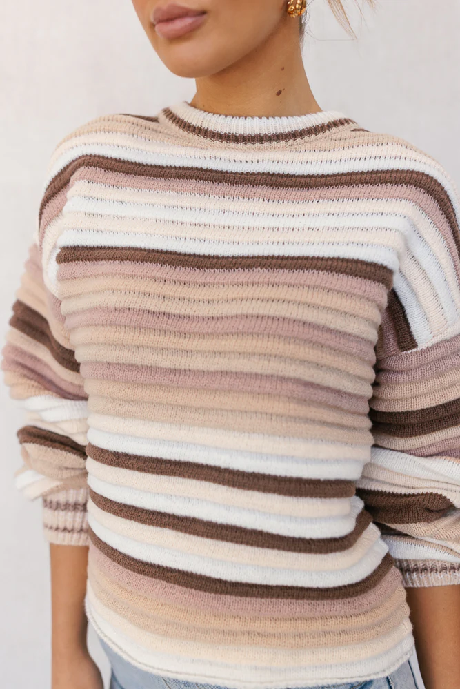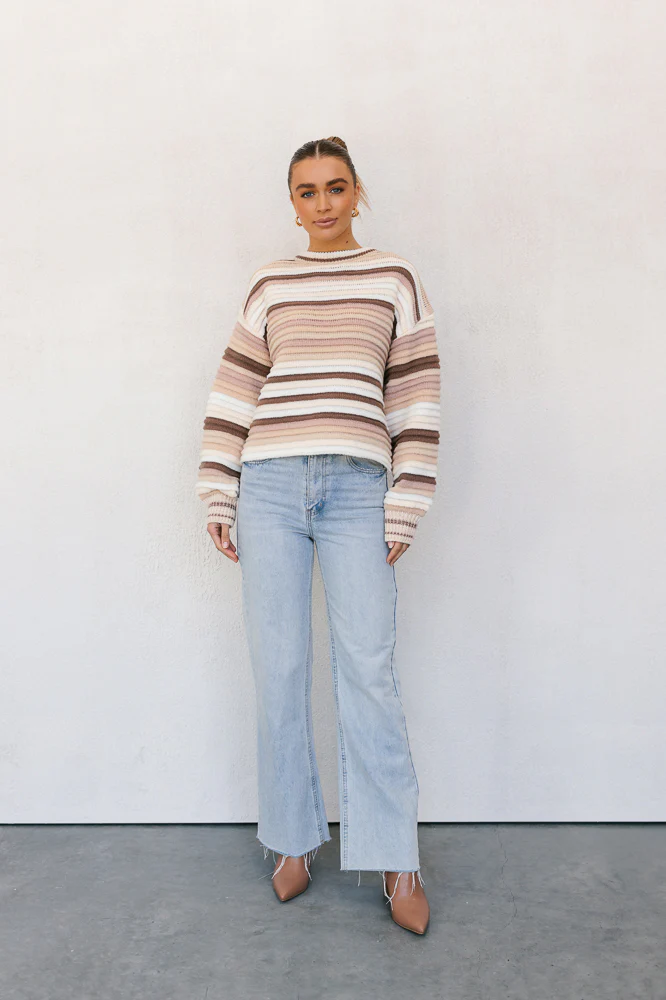 Our Zuma Jumper is a delightful addition to your wardrobe that embodies comfort + style. Her neutral hued stripes add a sense of versatile charm to your day. An oversized, boxy silhouette offers a relaxed fit + on-trend appeal.